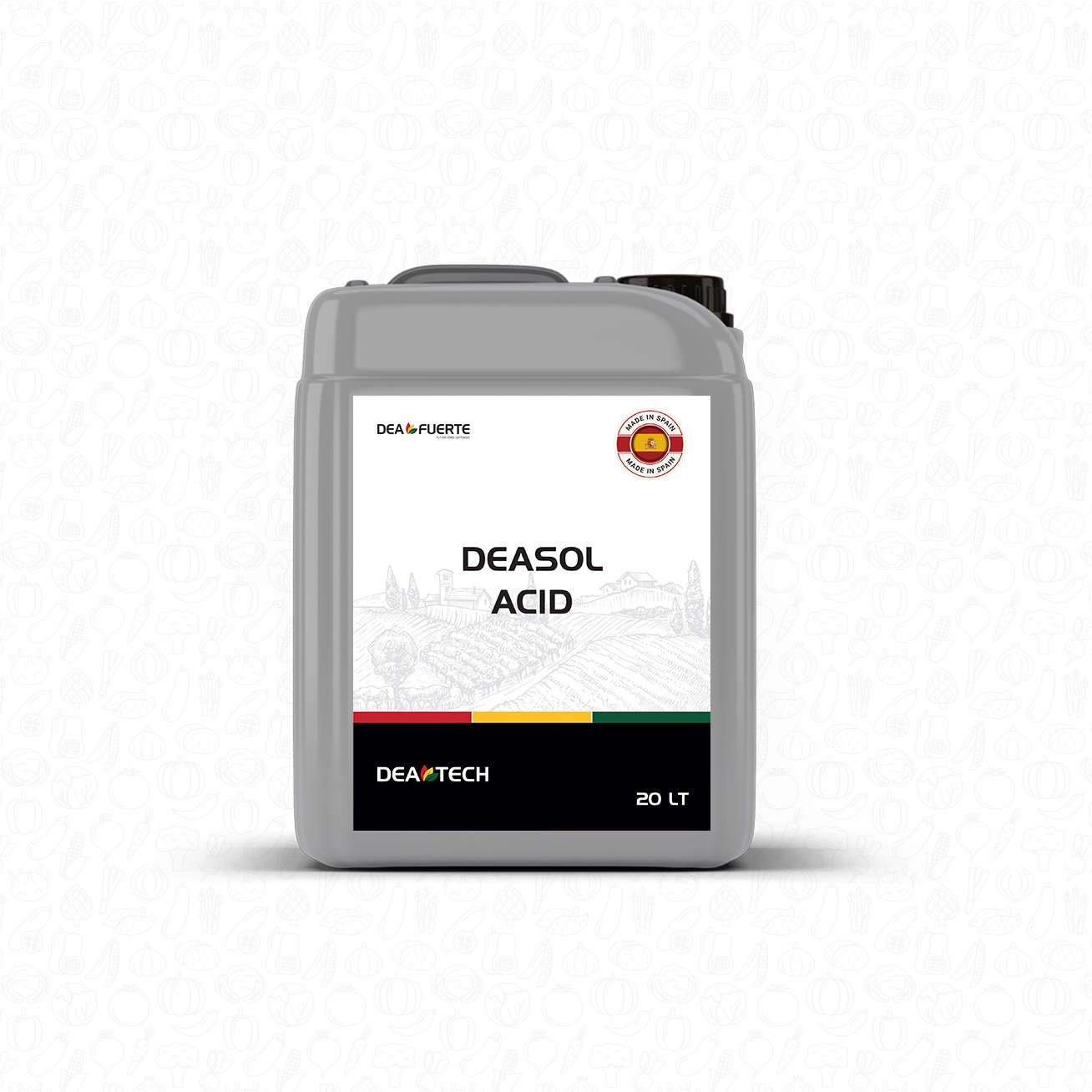 El Ácido Deasol es un producto líquido que se utiliza principalmente como acidificante o regulador de pH en agua de riego y mezclas fitosanitarias. Además de regular el pH del agua y del suelo, el Ácido Deasol actúa disolviendo el calcio en suelos con tendencia a la salinidad y reponiendo rápidamente el sodio disuelto durante el riego. El poder reductor de azufre de la mezcla facilita la absorción por las plantas al favorecer la oxidación de micronutrientes en el suelo.