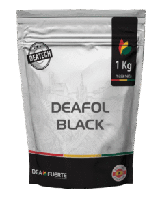 Deasol Black, es un fertilizante en polvo soluble en agua que contiene micronutrientes como zinc, manganeso y boro, que se aplica vía foliar para aumentar el rendimiento de floración de las plantas.